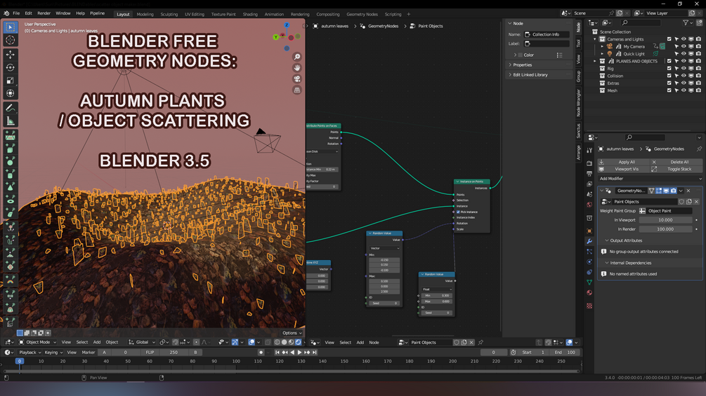 BLENDER FREE GEOMETRY NODES: AUTUMN PLANTS / OBJECT SCATTERING BLENDER 3.5
